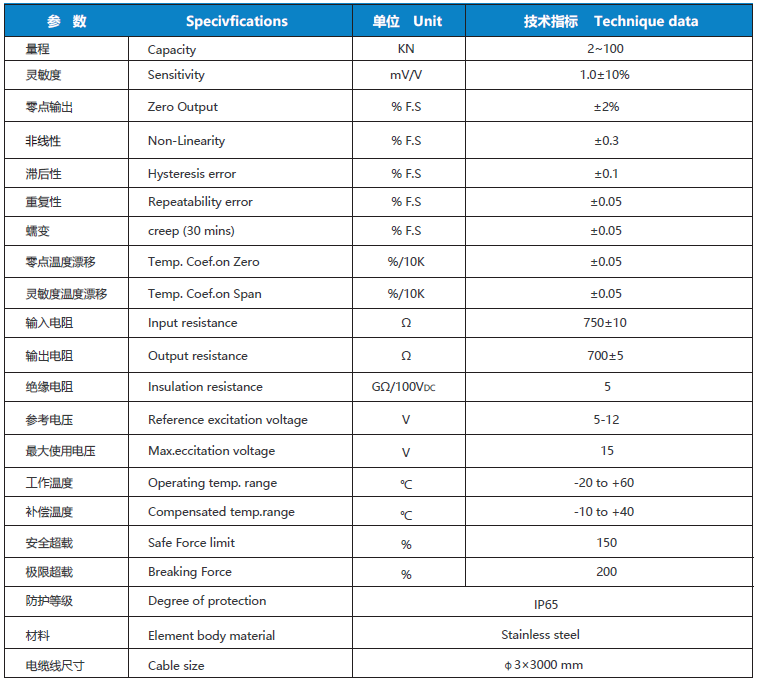 NS-WL2系列傳感器采用柱型剪切結構;