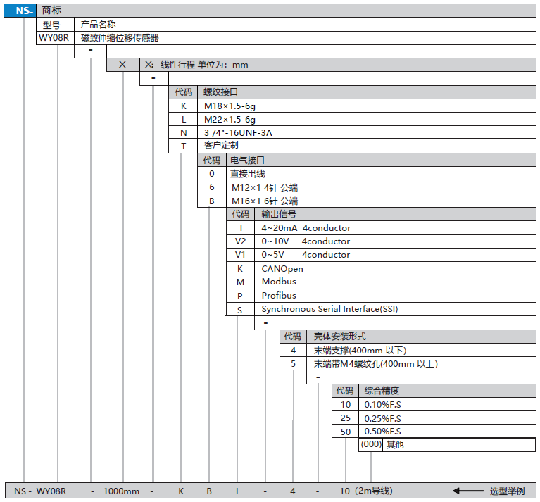 NS-WY08R系列 磁致伸縮位移傳感器